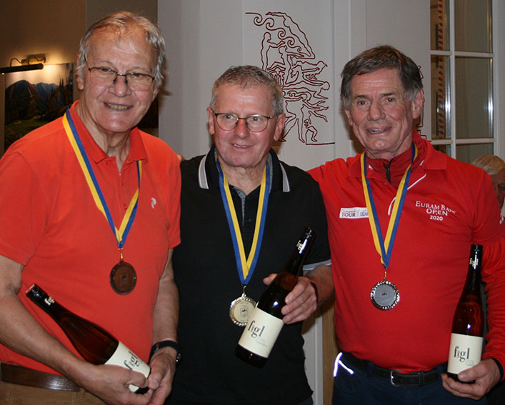 Ernst Knaller gewann neben seiner Matchplay-Partie gegen Karl Schlöghofer auch die Wertung 75+ mit 31 Punkten vor Ola Tenne mit 26 und Gerhard Harecker mit 16 Punkten. Wir gratulieren.