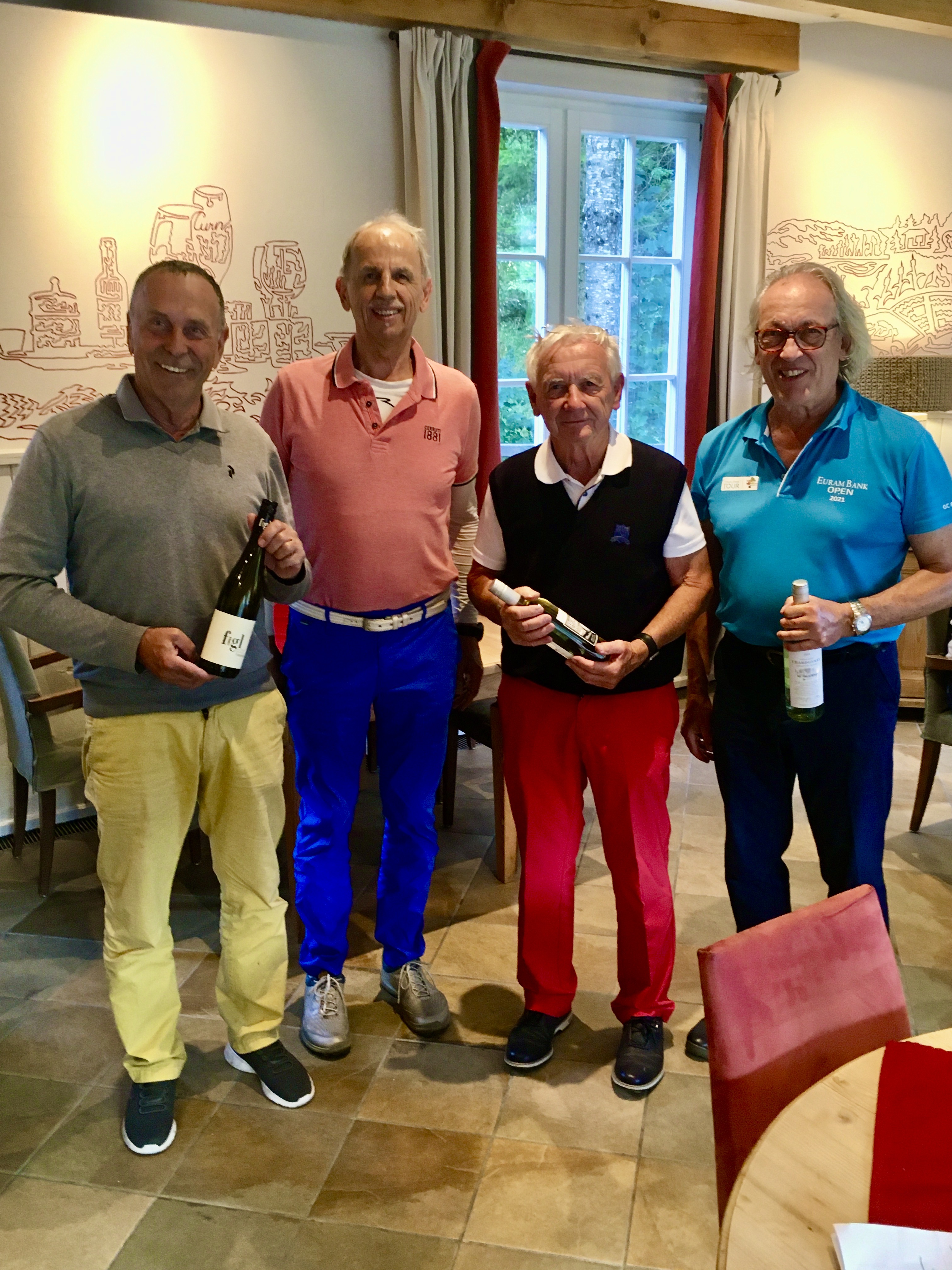 Thomas Säckl gewann die Nettowertung mit 35 Punkten (24 Brutto) vor Peter Chmela mit ebenfalls 35 Punkten. Die weiteren Plätze belegten Leopold Schweiger (32 Punkte) und Ewald Winkler (29 Punkte). Einen ganz besonderen Tag hatte Kurt Seitlinger, der mit einem neuen stylischen Outfit glänzte und auch noch sensationelles Golf spielte und sich mit 29 Bruttopunkten (40 Netto) souverän den Tagessieg und die Bruttowertung holte. Herzliche Gratulation!